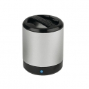 Haz de este accesorio un excelente compañero de viaje. Bocina portátil de aspecto cilíndrico en metal color plateado. Cuenta con cable auxiliar y USB.