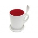 Convierte esta taza en un regalo muy original y útil. Cuenta con su propia cuchara y base o tapa. Tu logo lucirá genial en su cuerpo blanco.